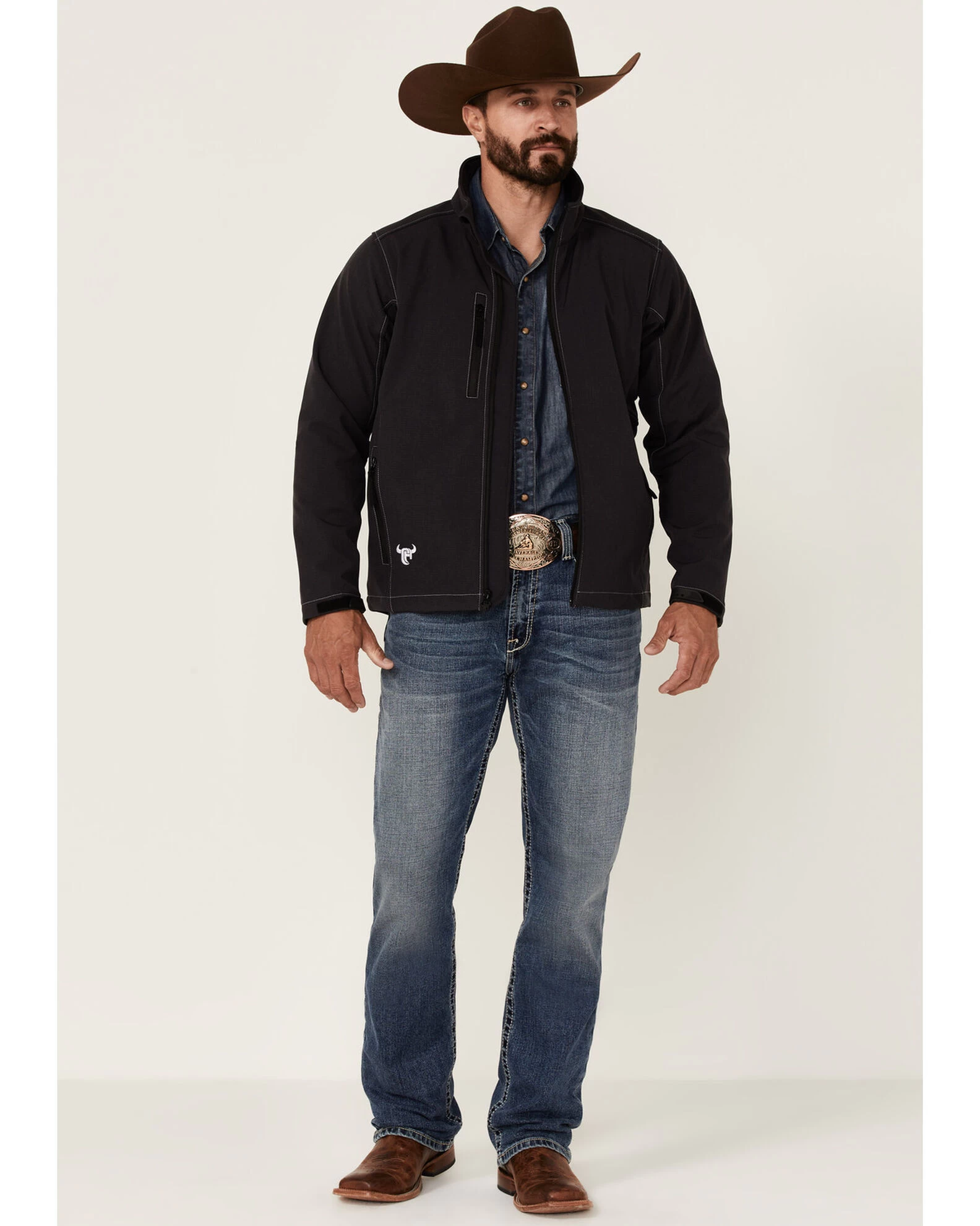 Cowboy Hardware Men’s Barbwire Stitched Zip-Front Poly Shell Jacket