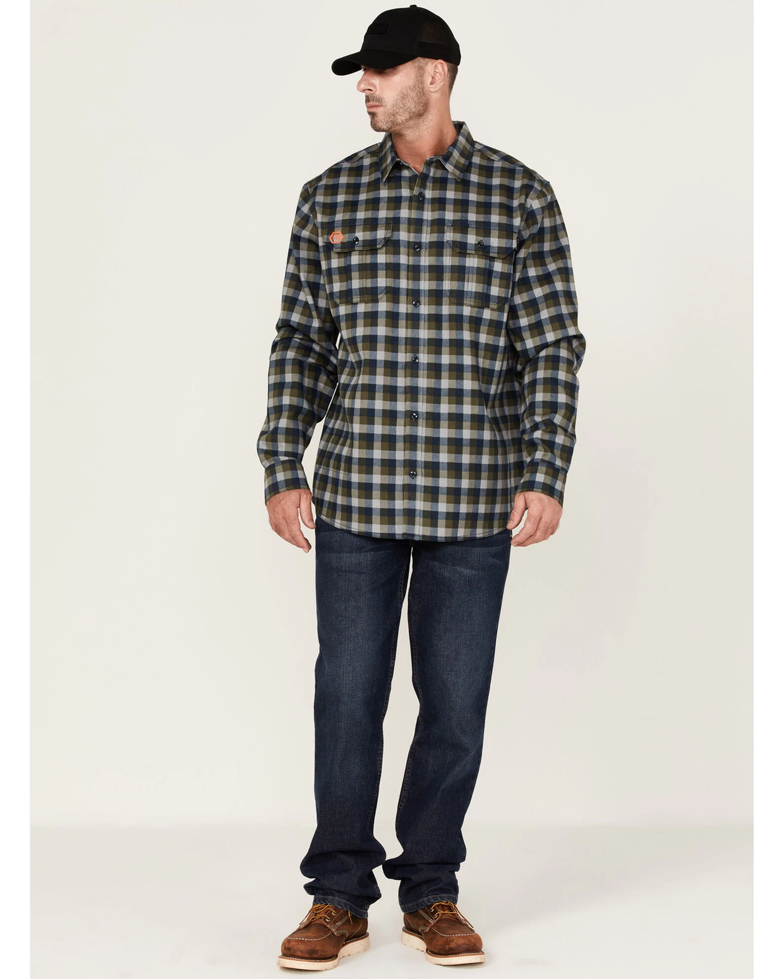 Hawx Men’s FR Buffalo Plaid Print Long Sleeve Button-Down Work Shirt
